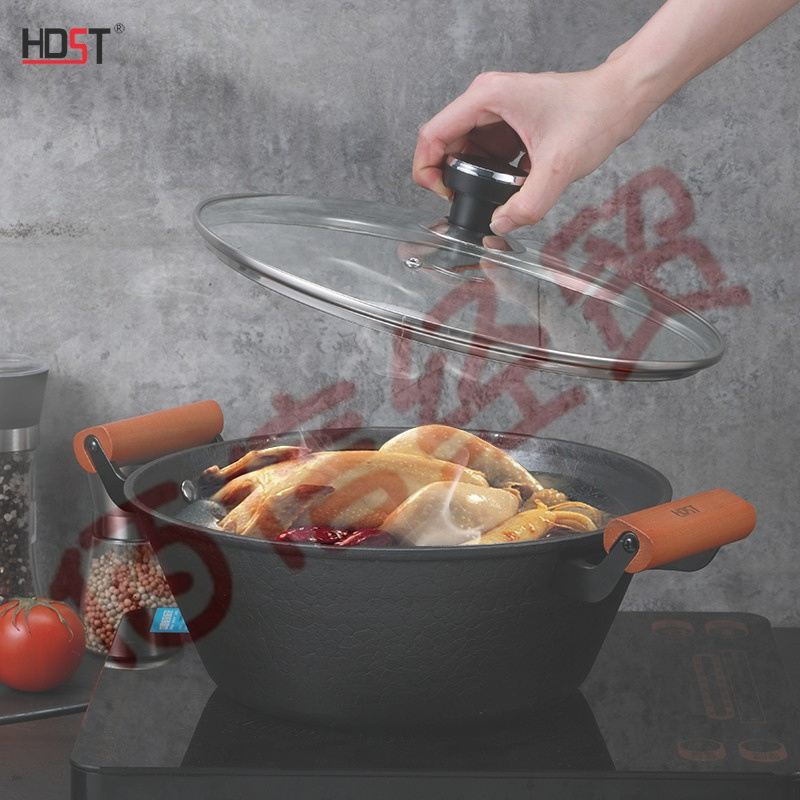 產(chǎn)品特點(diǎn):  鍋體精選生鐵為原材料,鍋身厚底薄壁設(shè)計(jì),物理抗粘,少油煙。木質(zhì)防滑手柄,防燙,耐用舒適。上蓋采用鋼化可視玻璃蓋,鍋蓋采用定時(shí)溫顯鍋珠。