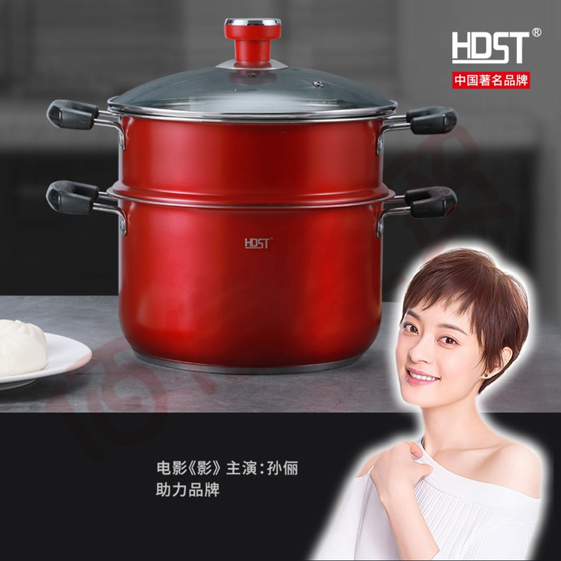 HDST 臻善 304不銹鋼三層復底家用多功能大容量24cm雙層湯蒸鍋 ZS-20122 中國紅 自營