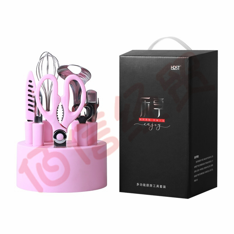 產(chǎn)品特點: PP塑料材質(zhì)+不銹鋼,集多種功能配件的廚房工具套裝,使用方便。顏色可定制。