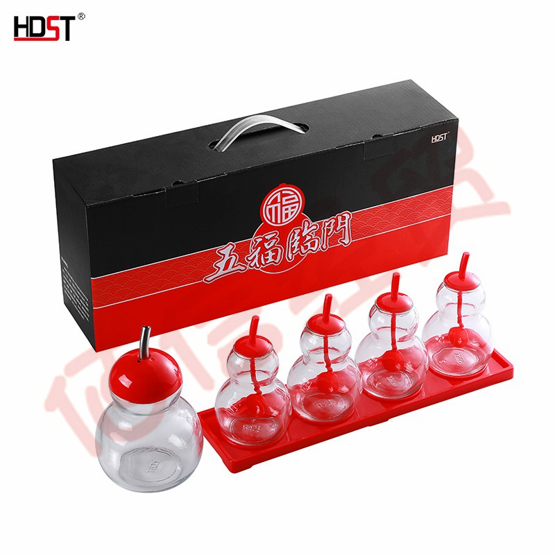 HDST/華典世通 五福臨門 廚房玻璃調(diào)味罐套裝5件套勺蓋一體油壺調(diào)料瓶鹽罐調(diào)味盒 五福臨門5件組 WF-20110 自營