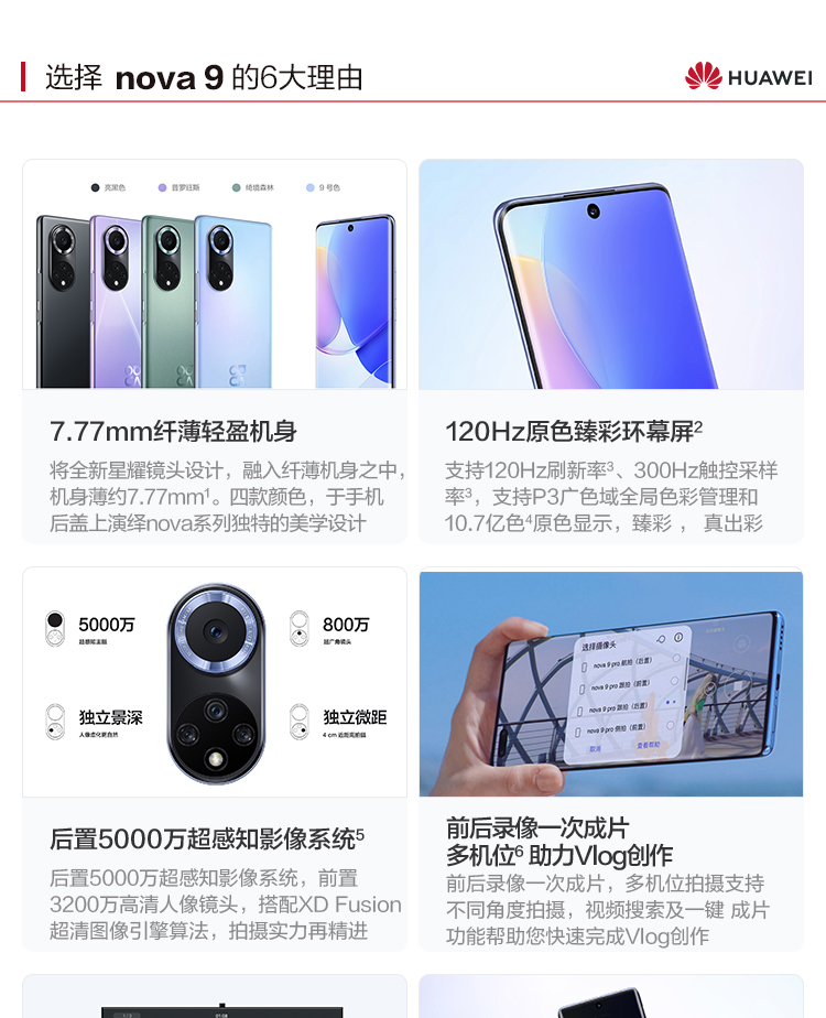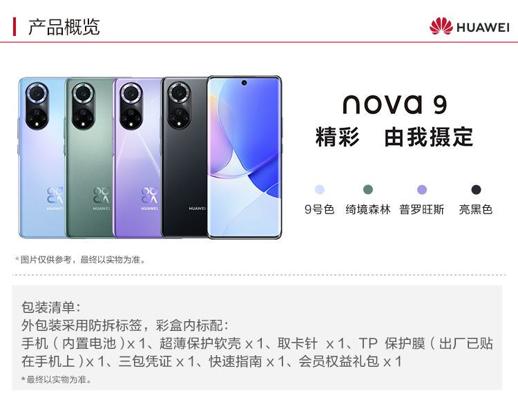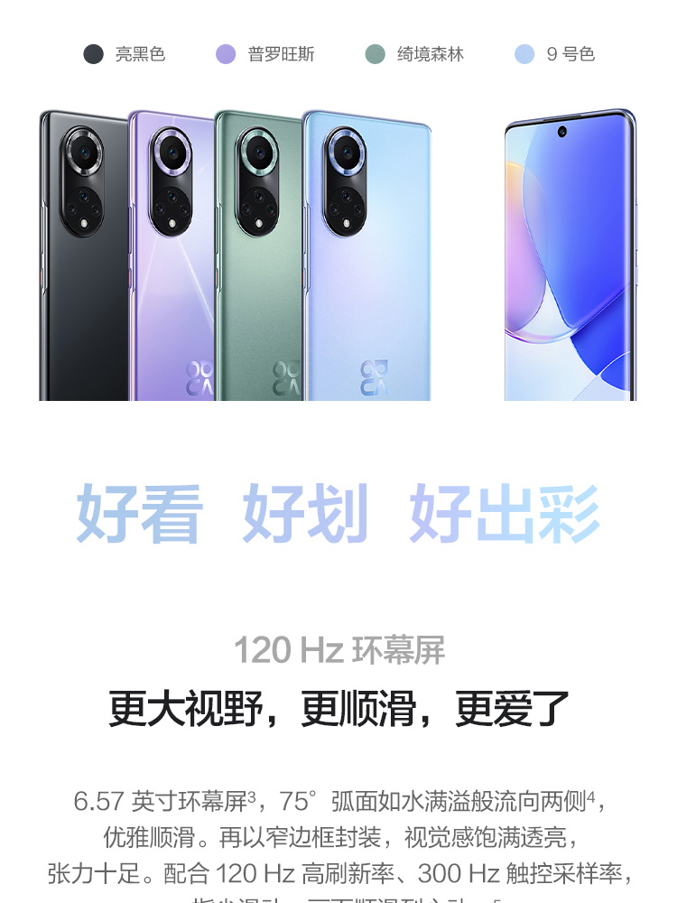 華為_HUAWEI_nova_9_120Hz高刷_后置5000萬超感知影像_搭載HarmonyOS_2_8GB+128GB_9號色華為手機(jī)_標(biāo)配無充 自營