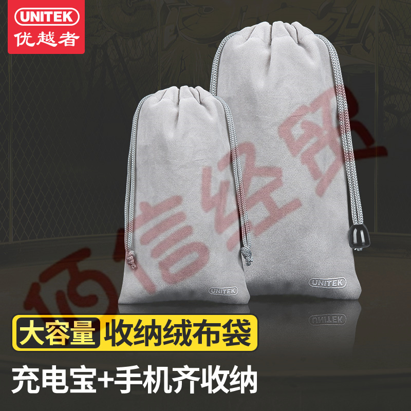 優(yōu)越者(UNITEK)絨布袋手機(jī)充電寶移動電源數(shù)據(jù)線收納袋保護(hù)袋 usb分線器移動硬盤盒U盤束口袋 Y-OT20GY 自營