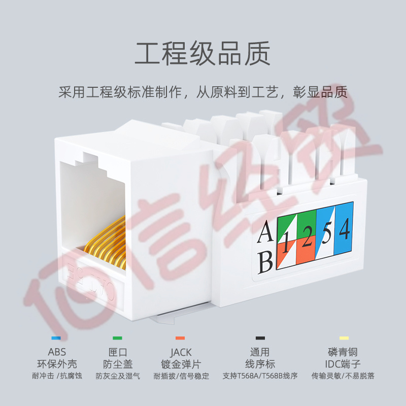 優(yōu)越者(UNITEK)超五類網(wǎng)絡(luò)模塊 CAT5E工程級鍍金版網(wǎng)絡(luò)信息模塊180度 超5類8P8C水晶頭母座T016ABK 自營