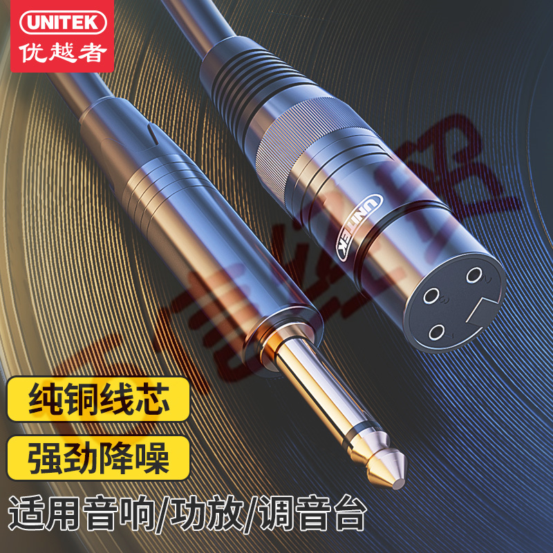 優(yōu)越者6.5mm轉卡農公對母話筒音頻線 6.35卡儂線 麥克風調音臺音響箱功放連接線1.5米 C9043BK 自營