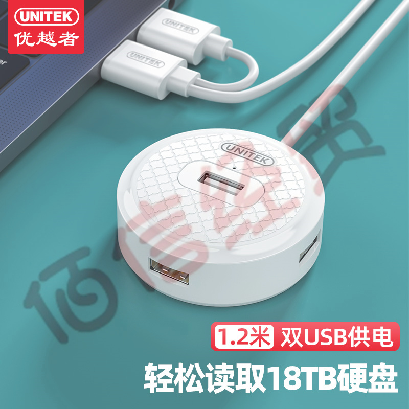優(yōu)越者 usb分線(xiàn)器 HUB集線(xiàn)器轉(zhuǎn)換器 一拖四多接口筆記本電腦多接口擴(kuò)展塢 雙USB接口供電 白 1.2米 H200DWH 自營(yíng)