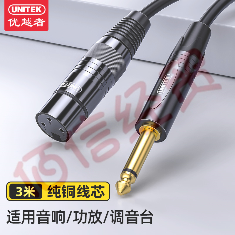 優(yōu)越者6.5mm轉(zhuǎn)卡農(nóng)公對母話筒音頻線 6.35卡儂線 麥克風調(diào)音臺音響箱功放連接線3米 C9043BK 自營