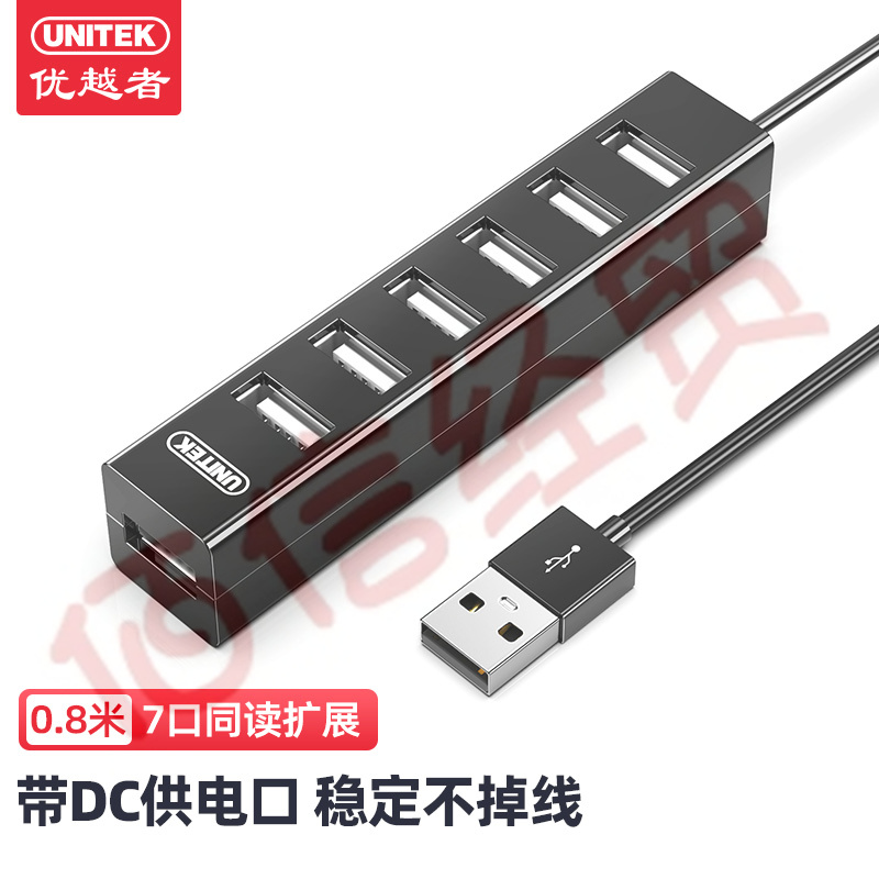 優(yōu)越者(UNITEK)usb分線器一拖七 高速拓展7口2.0HUB集線器 多接口擴展塢 0.8米Y-2160BK 自營