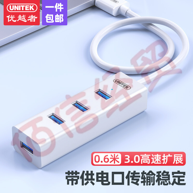 優(yōu)越者 usb3.0分線器 高速4口擴(kuò)展塢 筆記本電腦一拖四轉(zhuǎn)換器多接口延長線0.6米帶電源口白色 Y-3089GWH 自營