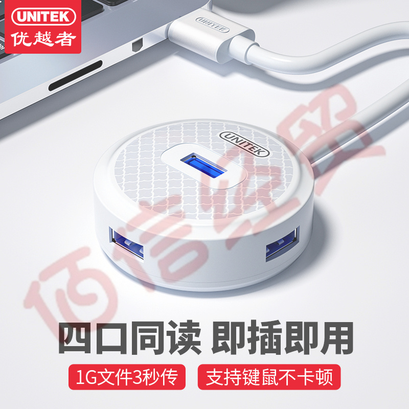 優(yōu)越者USB分線器3.0高速4口擴展塢筆記本臺式電腦帶電源供電口一拖四hub集線器usb延長線0.3米黑色 H308ABK 自營