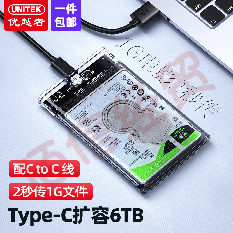 優(yōu)越者(UNITEK)移動硬盤盒2.5英寸 Type-C透明款 機(jī)械/SSD固態(tài)硬盤筆記本外置盒子 配Type-C3.1線 S103D 自營