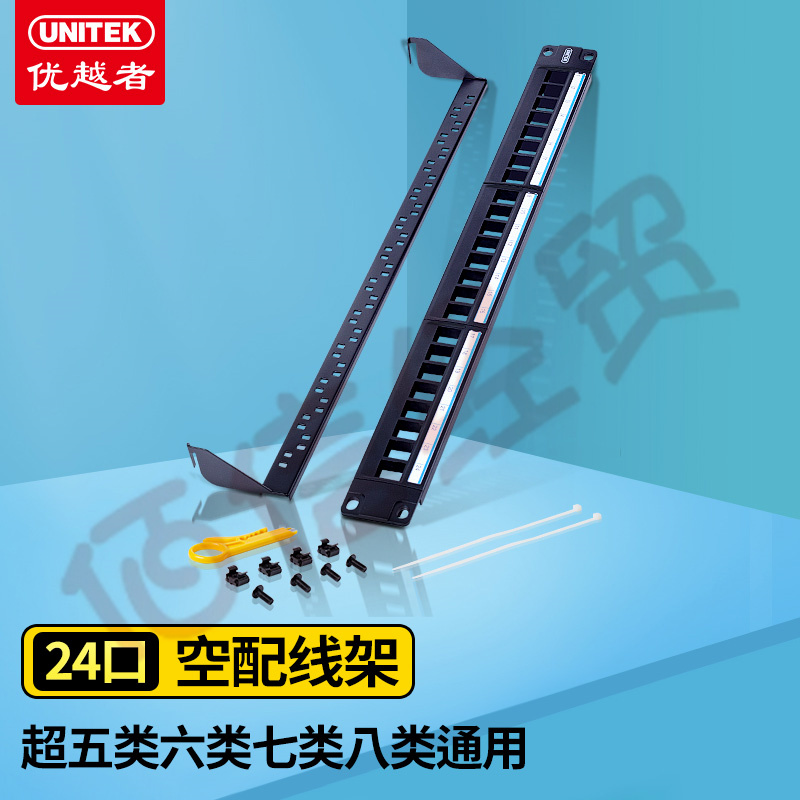 優(yōu)越者(UNITEK)配線架空架 超五類(lèi)六類(lèi)七類(lèi)網(wǎng)絡(luò)模塊 24口屏蔽網(wǎng)線電話配線架 模塊免打插座空配線架T019A 自營(yíng)