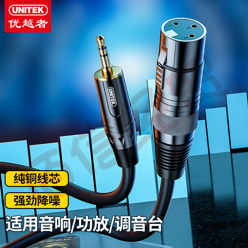 優(yōu)越者3.5轉卡儂母音頻線 手機電腦音響接聲卡麥克風話筒調音臺連接線 3.5mm公轉卡農(nóng)線母頭5米 C9045BK 自營