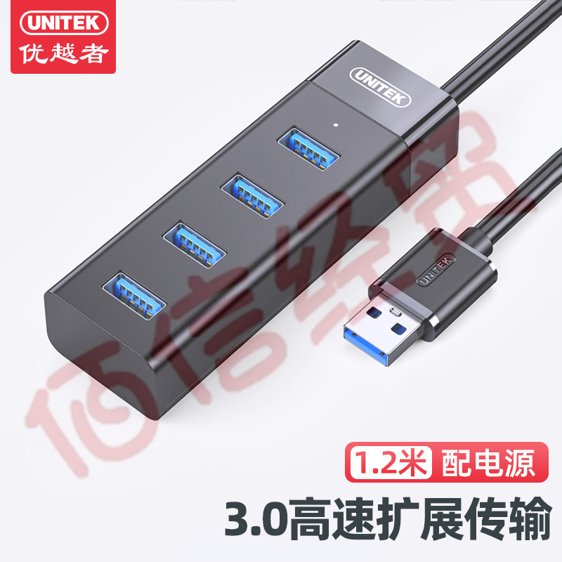 優(yōu)越者(UNITEK)USB分線器帶電源 高速hub集線器3.0 筆記本電腦一拖四usb擴(kuò)展器多接口1.2米延長線 Y-3098CBK 自營