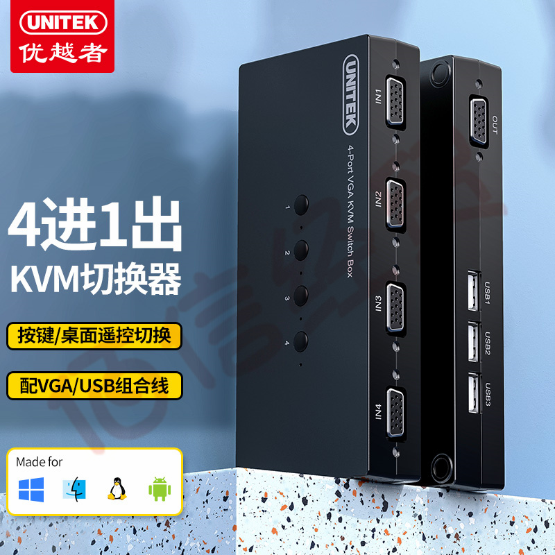 優(yōu)越者(UNITEK)KVM切換器 VGA視頻4口切屏器四進(jìn)一出臺(tái)式機(jī)筆記本顯示器鼠標(biāo)鍵盤(pán)打印機(jī)共享器配線 U-8710ABK 自營(yíng)