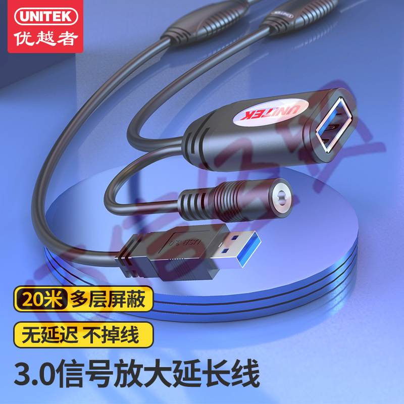 優(yōu)越者(UNITEK)USB延長線3.0帶DC供電電腦無線網卡打印機攝像頭公對母信號放大連接線usb延長器 20米 Y-3007 自營