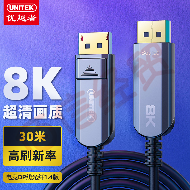 優(yōu)越者(UNITEK) C619BK光纖DP線30米 4K144Hz 8K高清DisplayPort公對公連接線電腦游戲電競顯示器視頻線 自營