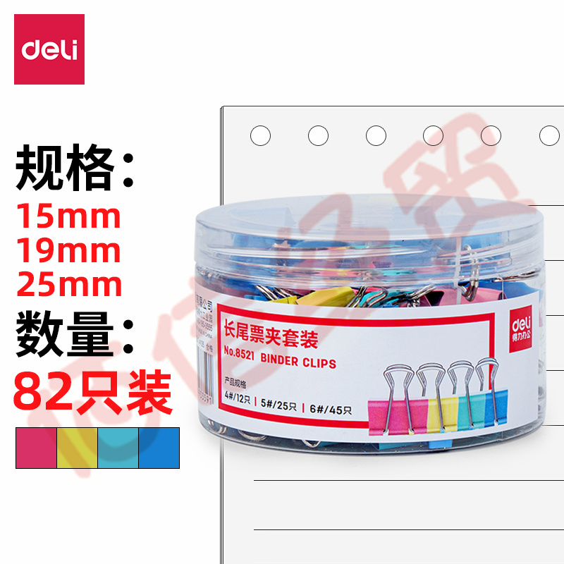 得力(deli)82只組合裝彩色長尾夾/燕尾夾/票夾/文件夾(25mm*12只+19mm*25只+15mm*45只) 辦公用品 8521 自營