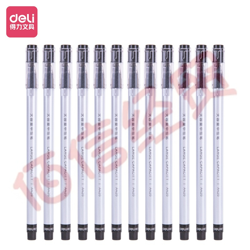 得力(deli)全針管中性筆 0.5mm大容量 一次性水筆簽字筆 黑色12支/盒 自營(yíng)