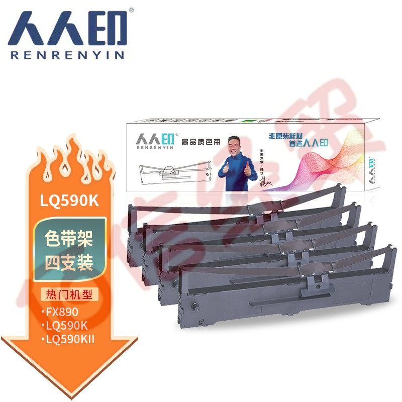 人人印LQ590K色帶4支裝 適用愛(ài)普生EPSON FX890 LQ590K LQ590KII LQ595K S015337 C13S015590打印機(jī)色帶架 自營(yíng)