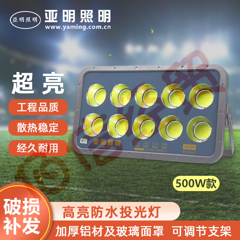 亞明照明 LED投光燈聚光燈大功率射燈 戶外防水超亮廣告工地照明燈廣場倉庫廠房球場室外泛光燈 高亮款 500W 自營