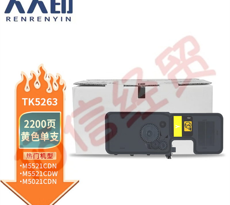 人人印TK-5253K黃色 適用京瓷Kyocera ECOSYS M5521CDW碳粉M5521CDN M5021CDN粉盒 TK5263大容量墨盒 含芯片 自營
