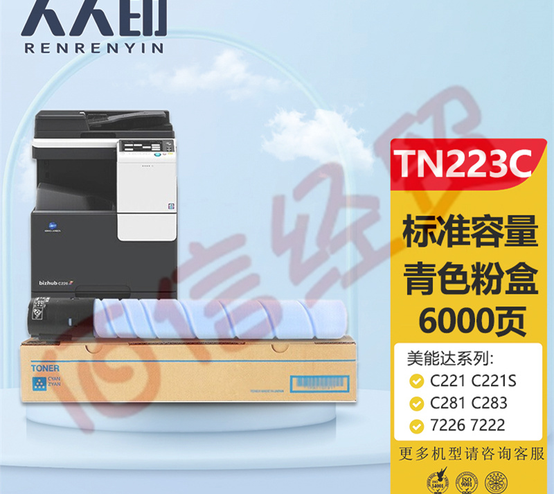 人人印 美能達(dá)TN223藍(lán)色墨粉盒 柯尼卡美能達(dá)TN224 C256 C266 C7222 C7226墨盒 柯美C226碳粉 (標(biāo)準(zhǔn)容量) 自營(yíng)