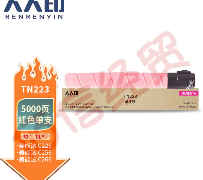 人人印 適用美能達TN223復印機粉盒Bizhub c226 c283 c266碳粉c256打印機墨粉盒 TN223M 品紅色粉盒 標準版 自營