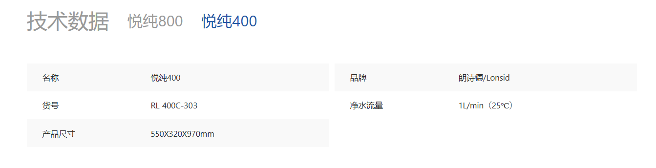朗詩德(LONSID) 朗詩德Lonsid悅純系列商用純水機 悅純400 LSD-RL-C303 黑色 自營