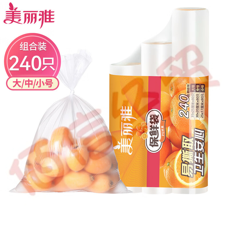¥42.50美麗雅(Maryya)一次性保鮮袋食品級家用廚房冰箱冷凍背心400只加大號35*45cm冷藏分裝袋加厚點斷式超市連卷袋(8卷/箱)(5個起售)