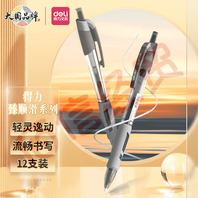 得力(deli)【順滑之星】臻順滑中性筆簽字筆 0.5mm子彈頭按動筆水筆 辦公用品 黑色 12支/盒S08 自營