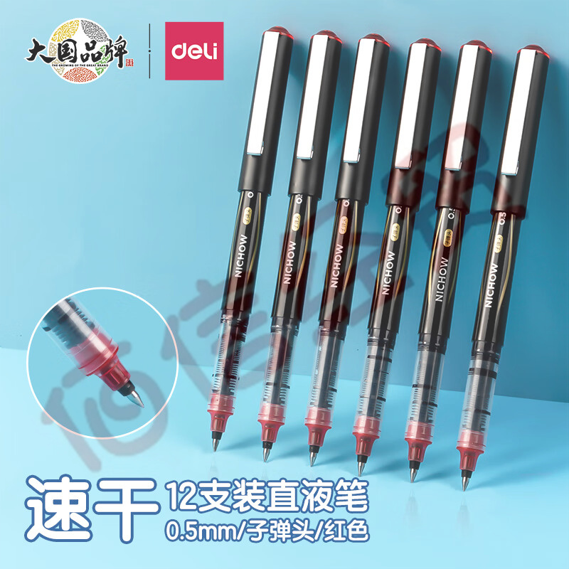得力(deli)直液筆簽字筆 0.5mm子彈頭辦公商務(wù)中性筆 水筆走珠筆 紅色 12支/盒 S656-Z1 自營