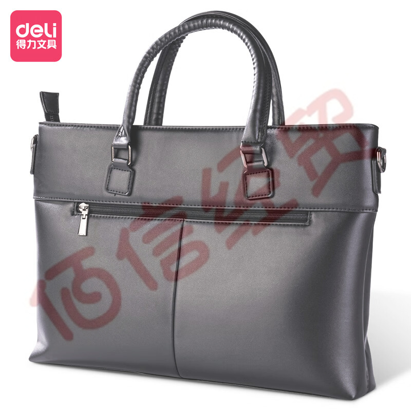 得力(deli)加厚皮質(zhì)立體辦公手提袋/會議包/事務(wù)包/商務(wù)男女職業(yè)拉鏈袋電腦公文包 黑色63813 便攜 自營