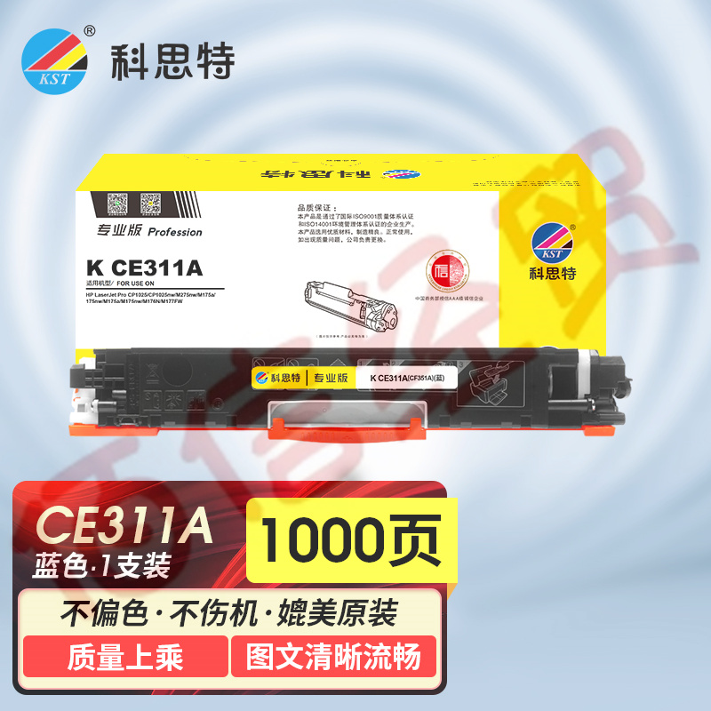 科思特K CE311A/CF351A 粉盒 適用惠普 CP1025 M275nw M175a/nw 可打印1000頁 藍(lán)色 專業(yè)版 自營