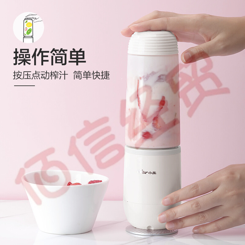 小熊(Bear)榨汁機(jī) 便攜式榨汁杯 果汁機(jī) 多功能料理機(jī) 隨行攪拌機(jī)迷你雙杯母嬰材質(zhì) LLJ-D04B1 白色【便攜式雙杯】 自營