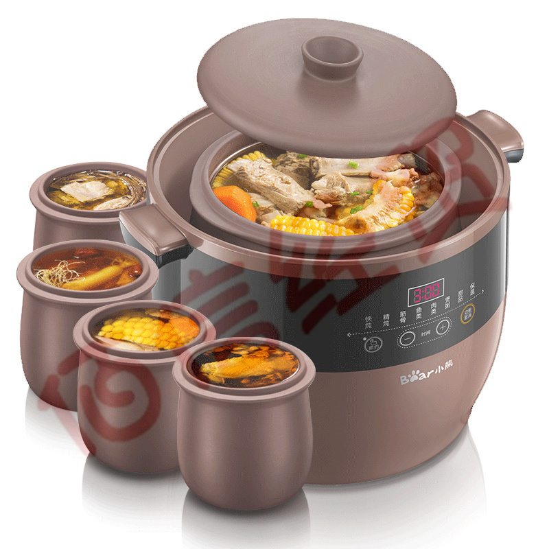 小熊(Bear) 電燉鍋 電燉盅 煲湯鍋 紫砂鍋 燉湯鍋 隔水燉盅煮粥陶瓷電砂鍋燕窩熬粥上蒸下燉 【4.5L大容量】一盅五膽 DDZ-B45Z1 自營