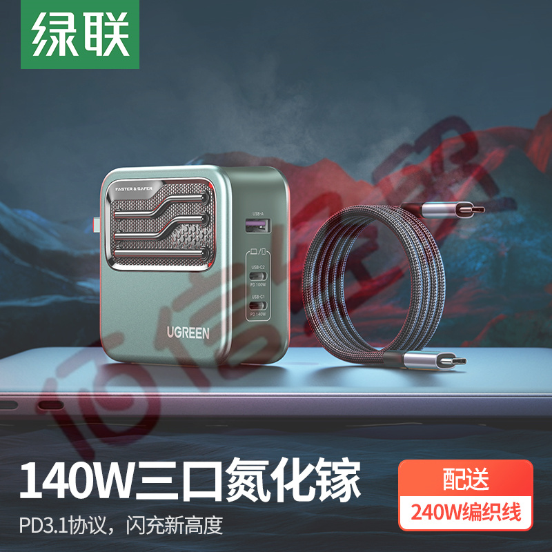 綠聯(lián) 閃電湃140W氮化鎵充電器GaN套裝 PD快充頭多口通用Macbook蘋果14/13Type-C華為手機筆記本配240W數(shù)據(jù)線 自營
