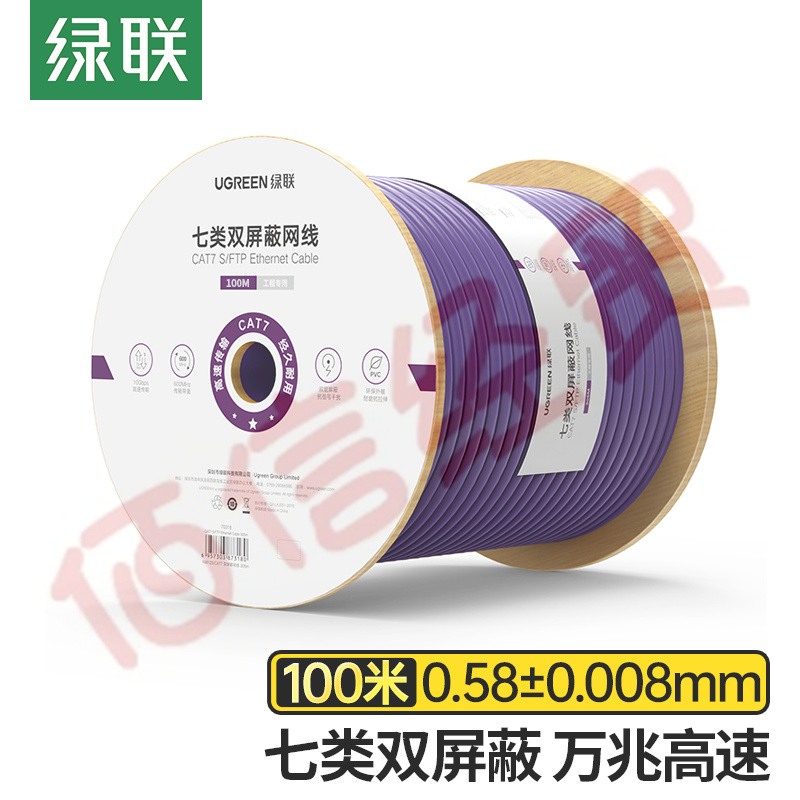 綠聯(lián)(UGREEN)七類萬兆雙屏蔽網(wǎng)線【0.58±0.008mm純銅線芯】CAT7類雙絞工程家裝布線網(wǎng)絡(luò)箱線 100米 自營