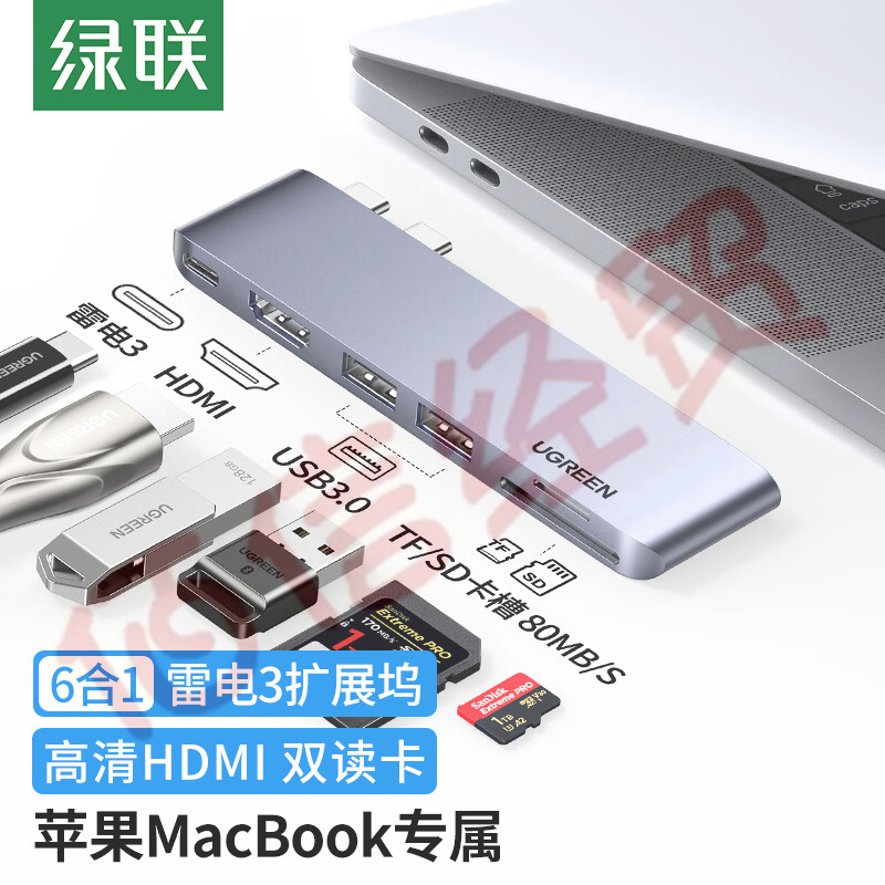 綠聯(lián)Type-C擴(kuò)展塢蘋果直插式拓展塢MacBookPro/Air筆記本通用M1/2芯片雷電3HDMI轉(zhuǎn)換器SD/TF讀卡USB3.0六合一 自營