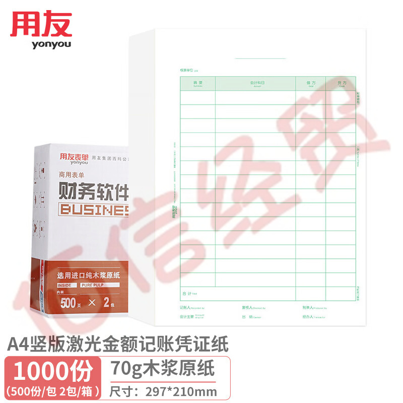 西瑪用友KPJ105 A4豎版激光金額記賬憑證210*297--500份/包 2包/箱(整箱售) 自營(yíng)