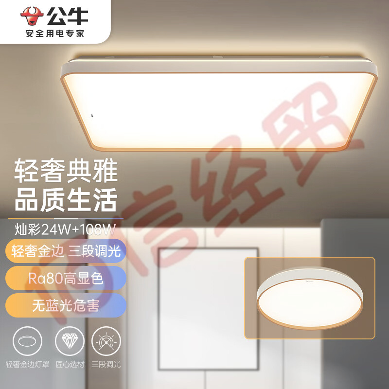 公牛(BULL)LED吸頂燈 北歐現(xiàn)代簡約客廳臥室書房超薄燈具 MX-C108U-BD燦彩 自營