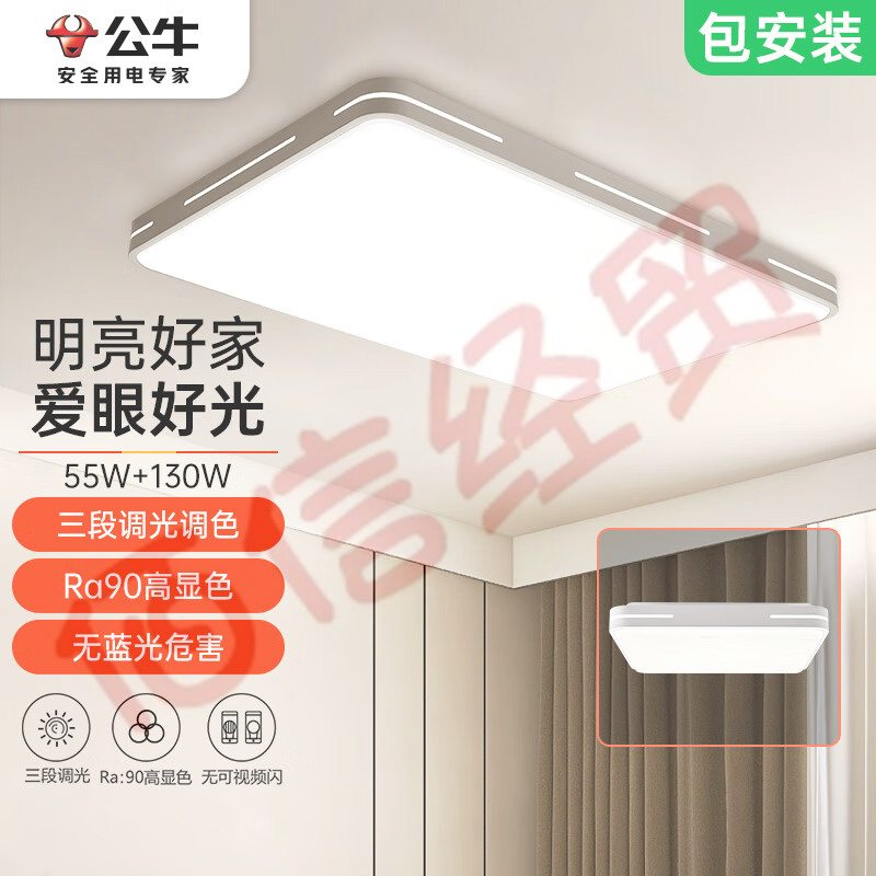 公牛(BULL)吸頂燈 明皓MX-C130E-BS客廳燈全屋燈北歐現(xiàn)代簡約 130W+55W套裝 自營