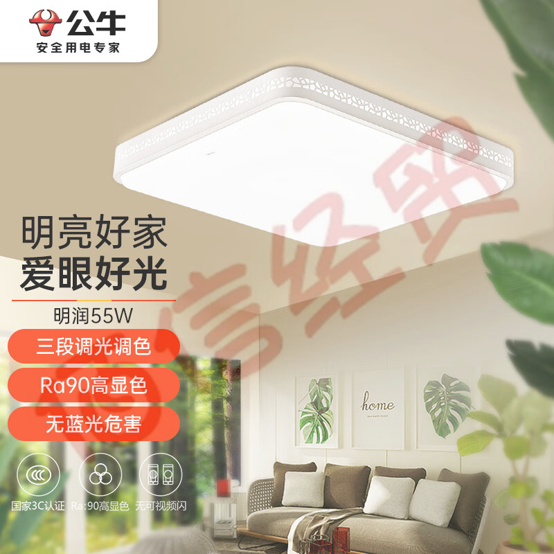 公牛(BULL)吸頂燈明潤方形臥室燈簡約現(xiàn)代三段調(diào)光調(diào)色55W 536*536*102.4mm 自營