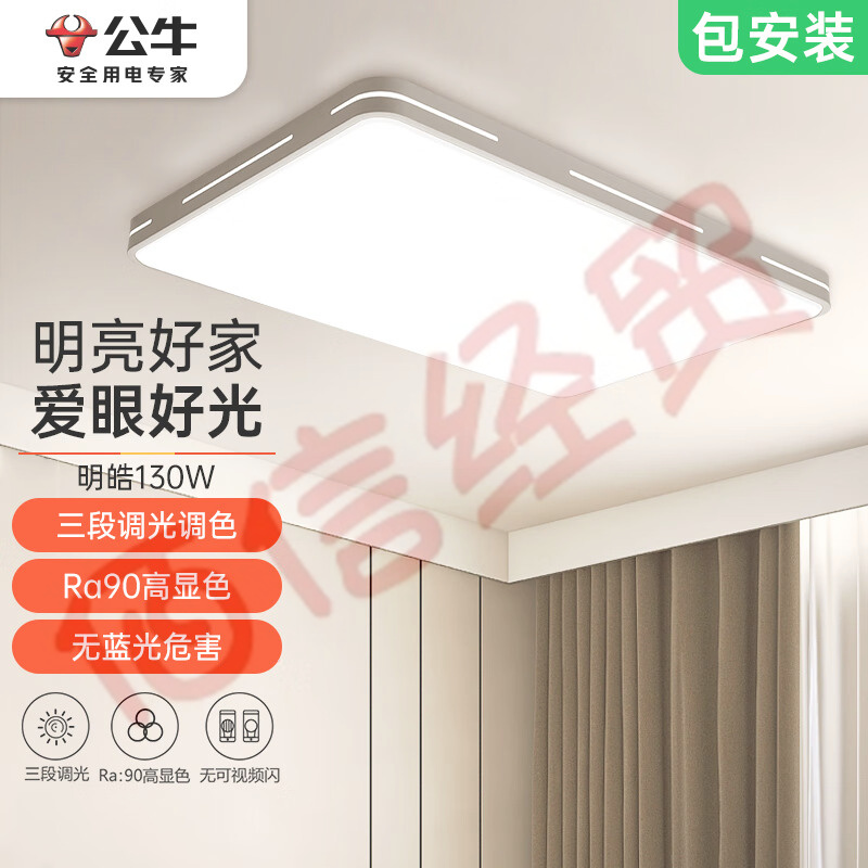 公牛(BULL)吸頂燈 明皓長方形燈客廳燈全屋燈北歐現(xiàn)代簡約三段調(diào)光款130W 960*660*102.5mm 自營