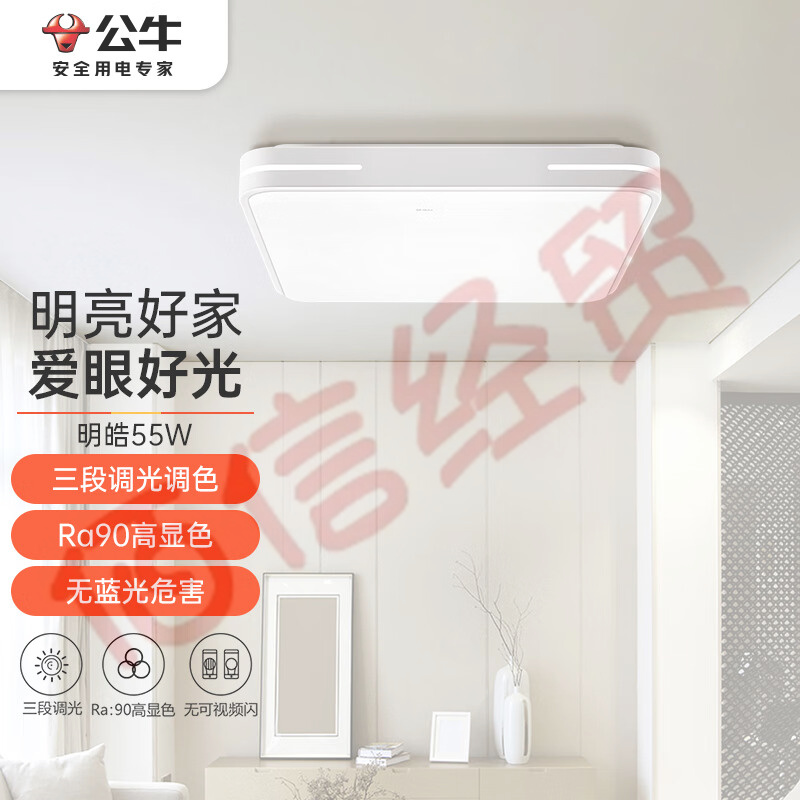 公牛(BULL)吸頂燈明皓方形燈臥室燈北歐現(xiàn)代簡(jiǎn)約三段調(diào)光款55W 自營(yíng)
