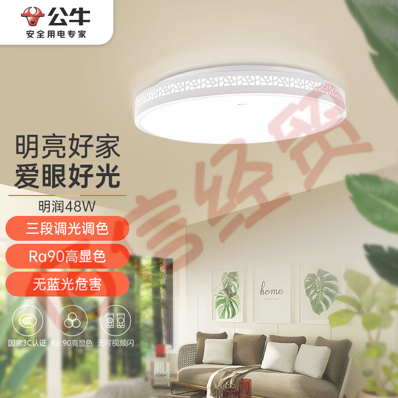 公牛(BULL)吸頂燈明潤圓形臥室燈北歐風(fēng)簡約現(xiàn)代三段調(diào)光調(diào)色48W 475*93mm 自營