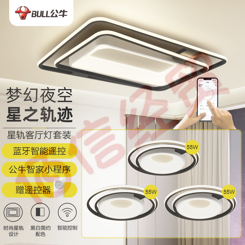 公牛(BULL)LED智能吸頂燈X35星軌MX-M130A-CD遙控器小程序控制無極調(diào)光/三檔調(diào)色(客廳燈+圓形燈*3) 自營