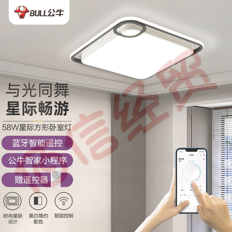 公牛(BULL)智能吸頂燈 X36星際系列 遙控器小程序控制MX-M060B-CD客廳燈臥室燈 無極調(diào)光/三檔調(diào)色 58W 自營