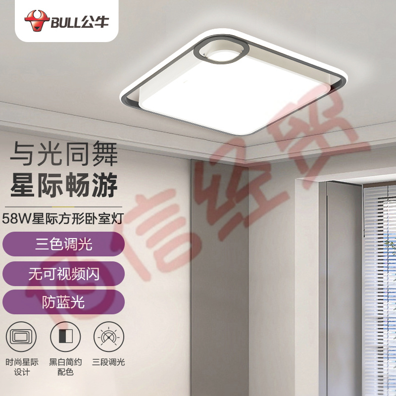 公牛(BULL)LED吸頂燈 X36星際系列 MX-M060B-CD客廳燈臥室燈餐廳燈 三段調(diào)光 方形58W 自營