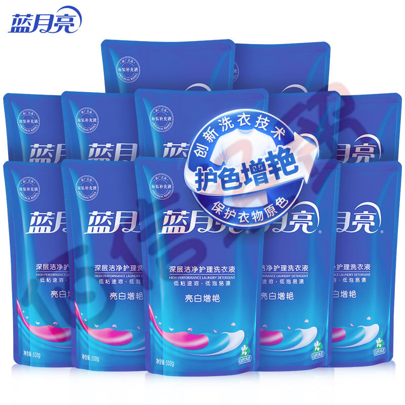 藍(lán)月亮 洗衣液袋裝亮白增艷自然清香500g*12 補(bǔ)充裝 自營
