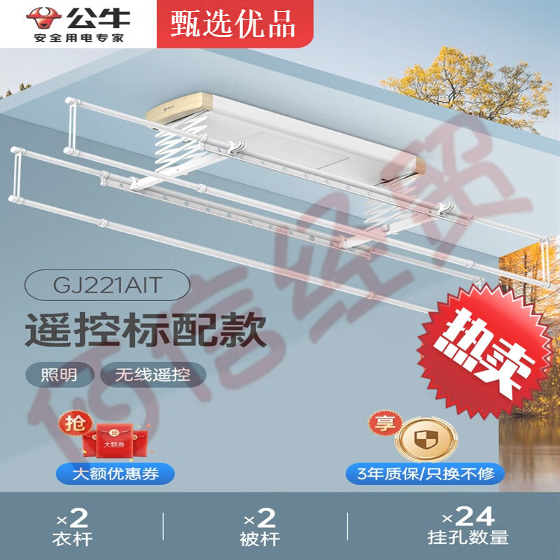 公牛晾衣架公牛智能電動(dòng)晾衣架遙控升降衣被同曬智能語音控制智能 旗艦款照明+遙控+語音+消毒+風(fēng)干GJ226AIT 自營